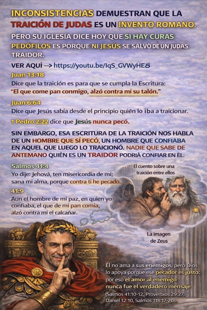 "Si crees que Jesús es el Señor y que Dios lo resucitó no serás salvo. Te han engañado con esa mentira y te lo demuestro. Con Hebreos 1:6, Roma tergiversó la profecía de Salmos 97:7. Donde el texto exige que todos los ángeles / dioses adoren a Jehová, la reinterpretación romana desvía la adoración hacia una criatura, invirtiendo el sentido original del pasaje y transformando una proclamación de supremacía divina en una justificación de culto indebido. Oseas 13:4 establece un principio absoluto: 'No conocerás, pues, otro dios fuera de mí, ni otro salvador sino a mí.' El enunciado es excluyente. No deja espacio para una segunda figura salvadora con estatus divino ni para intermediarios divinizados. El sujeto es uno solo. Ahora bien, Oseas 6:2 dice: 'Nos dará vida después de dos días; en el tercer día nos resucitará, y viviremos delante de él.' El texto: • no habla de un solo individuo, • no menciona 48 horas, • no define días de 24 horas. En este tipo de literatura antigua, los 'días' funcionan como unidades de período. En varios textos comparables, un día equivale a mil años. Bajo esa lógica, el pasaje apunta a un retorno colectivo a la vida en el tercer milenio, es decir, después de dos milenios completos, no a un evento individual inmediato. Este punto es crucial: el texto no describe una resurrección adelantada, sino una restauración futura y colectiva situada en el tercer milenio. Posteriormente, este pasaje fue sacado de contexto para construir la idea de una resurrección corporal individual al tercer día literal, y esa lectura fue convertida en requisito obligatorio de salvación, algo que el texto nunca afirma. Este patrón se refuerza en Romanos 10, donde se lee: 'Si confesares con tu boca que Jesús es el Señor, y creyeres en tu corazón que Dios le levantó de los muertos, serás salvo.' 'Porque todo aquel que invocare el nombre del Señor, será salvo.' Aquí ocurre otra operación clave: se toma un texto anterior y se sustituye el sujeto original. El texto citado proviene de Joel 2:32: 'Y será que cualquiera que invocare el nombre de Jehová, será salvo…' El pasaje original: • no menciona al Mesías, • no menciona a un enviado, • no menciona mediadores. Habla únicamente de Jehová. En Romanos 10, esa afirmación es reaplicada a Jesús. El lector puede comparar ambos textos y verificar el desplazamiento. Además, hay un relato que contradice de forma directa la idea de una resurrección corporal inmediata: la parábola de los labradores malvados. En ella, Jesús anuncia su muerte y su regreso, pero ese regreso está asociado a juicio y corrección, no a una condición de perfección absoluta. No se presenta como alguien que 'ama a sus enemigos', sino como parte de un ajuste de cuentas. Se identifica con la piedra que los constructores desecharon. Esa imagen se desarrolla en Salmos 118, donde el personaje que regresa es corregido, no destruido, y luego accede por una puerta reservada a los justos. La corrección implica proceso, no omnisciencia previa. Esto es clave: Si Jesús ya hubiera resucitado con un cuerpo glorificado e inmortal, como se afirma en Hechos, no habría motivo alguno para corrección posterior. Un ser que ya conoce plenamente la verdad no necesita ser corregido. El hecho de que exista corrección indica que no vuelve con una mente omnisciente, sino con una que aún necesita conocer y depurarse. Eso solo encaja con un retorno en un nuevo cuerpo, del mismo modo que ocurrirá con los demás justos. Por eso Daniel 12:10 habla de que los justos serán limpiados. Limpiar implica proceso. Y ese proceso encaja con una resurrección colectiva en el tercer milenio, no con una resurrección individual adelantada. En síntesis: se toman textos colectivos y se individualizan; se toman referencias a Jehová y se reasignan; se convierte una interpretación en dogma obligatorio; y se construye un sistema que entra en conflicto con la coherencia interna de los propios textos. 1 Corintios 11:1–16. Pablo dice: 'Imítenme, como yo imito a Jesús'. En ese mismo pasaje, Pablo afirma que al varón le es deshonroso llevar el cabello largo. Por lo tanto, Pablo no imitaría algo que él mismo desaprueba. De esto se deduce que Jesús no llevaba el cabello largo. La imagen difundida y atribuida a Jesús no describe al Jesús que Pablo imitaba. Ahora pensemos. ¿Qué dioses adoraba Roma en tiempos de Jesús? Roma adoraba a Zeus, también llamado Júpiter. Entonces surge la pregunta: ¿por qué la imagen atribuida a Jesús se parece tanto a Júpiter? Y según Deuteronomio 4, Dios no se mostró en figura alguna, precisamente para evitar la idolatría. Pero Roma traslado la adoración al Dios invisible a la imagen de Zeus, a quién rebautizó como Jesús: La historia demuestra que los vencedores de una guerra escriben la historia, aunque mientan contra la verdad, así Roma reescribió las enseñanzas de religión que persiguió, pero la mentira siempre deja huellas: En 1 Corintios 11:1–16 Pablo dice: 'Imítenme, como yo imito a Jesús'. En ese mismo pasaje, Pablo afirma que al varón le es deshonroso llevar el cabello largo. Por lo tanto, Pablo no imitaría algo que él mismo desaprueba. De esto se deduce que Jesús no llevaba el cabello largo. Ahora pensemos. ¿Qué dioses adoraba Roma en tiempos de Jesús? Roma adoraba a Zeus, también llamado Júpiter. A Marte. Hoy les rezan a imágenes de Marte, pero con el nombre de San Miguel, al dios Marte Roma lo representaba como un legionario romano y le rezaban a sus estatuas. Hoy hace lo mismo, solo le puso otro nombre a su dios soldado romano. Y lo mismo aplica para Zeus a quién rebautizaron como Jesús. Al cambiar el objeto de adoración de solo a Jehová, a la adoración a Jesús, y al asociar a Jesús con Zeus, Prácticamente están dirigiendo la adoración a su mismo dios pagano: Son las estatuas de sus mismos dioses con diferentes nombres en sus placas. No señalo al antiguo testamen